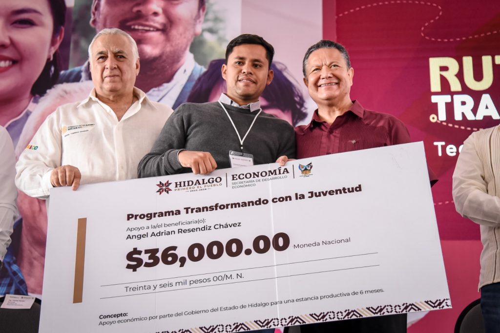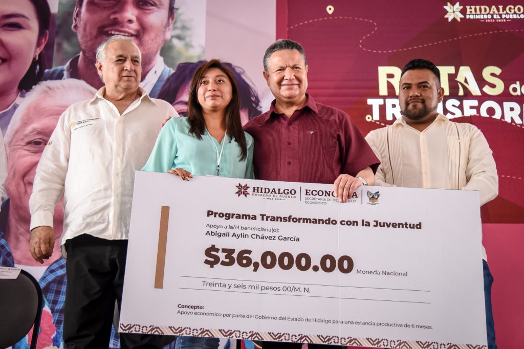 Referente al desarrollo económico de Tecozautla, el titular del Ejecutivo estatal realizó la entrega simbólica de becas “Tu experiencia transforma” y “Transformando con la juventud”, estrategias que permitirán la inserción laboral de personas jóvenes y adultos mayores.