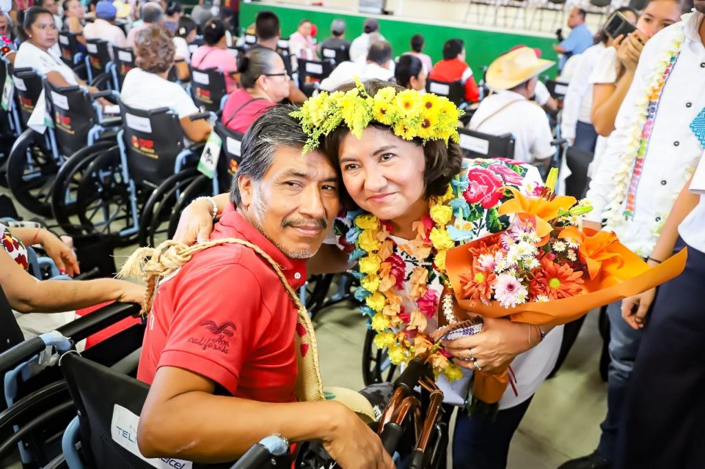 Ahí las autoridades entregaron 130 sillas de ruedas y una silla PCI; 225 lentes graduados, 45 aparatos auditivos, 24 bastones de uno y cuatro puntos, así como un bastón de invidente, que permitirán a la niñez, hombres y mujeres de la región ser autosuficientes y participar activamente en sus vidas cotidianas.