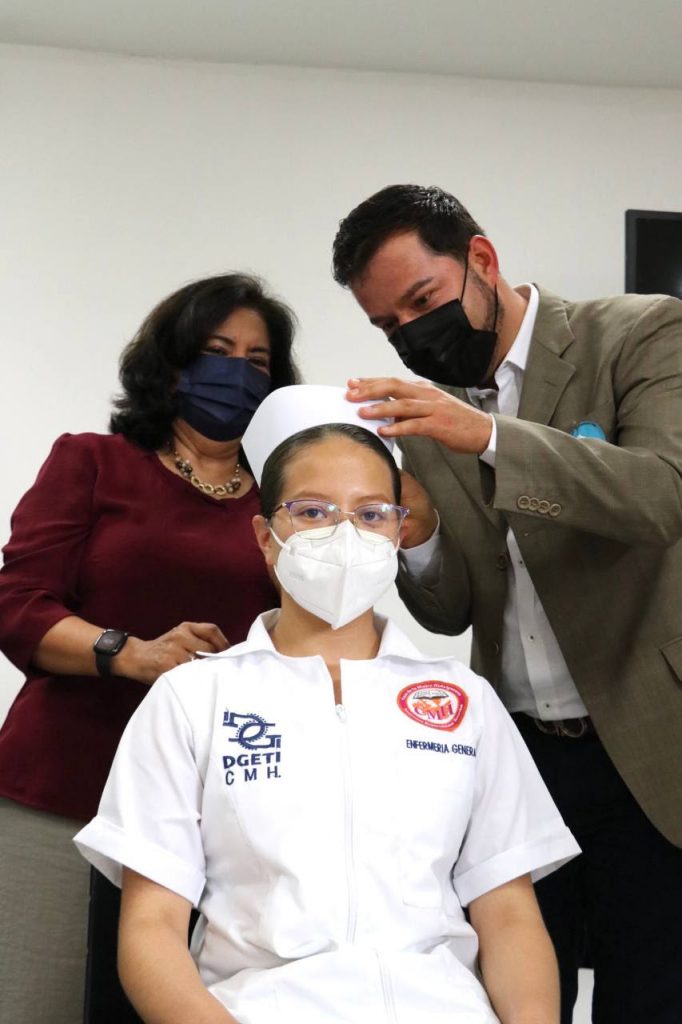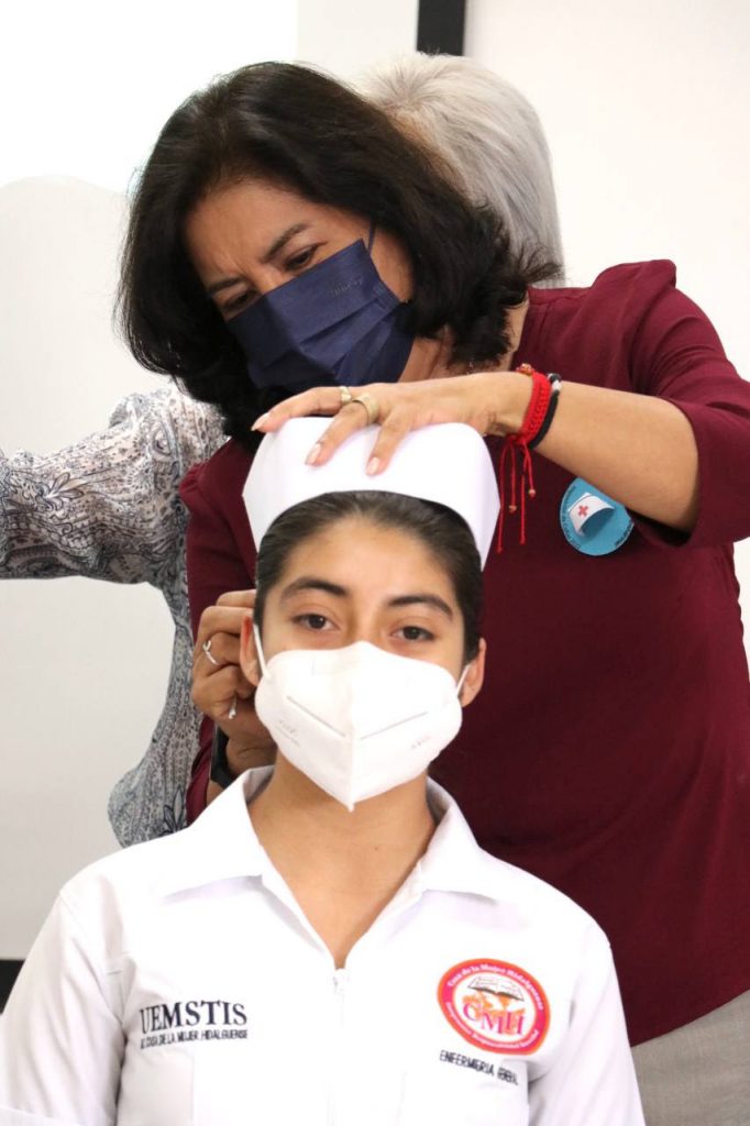 Edda Vite Ramos, presidenta del Patronato del Sistema para el Desarrollo Integral de la Familia DIF Hidalgo, encabezó la ceremonia de “Imposición de Cofia” a 51 estudiantes del bachillerato tecnológico en enfermería.