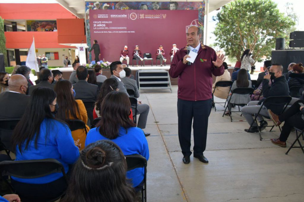 Por su parte, el titular de la Oficina de Enlace Educativo del Gobierno de México en el estado de Hidalgo, Jesús López Serrano, indicó que el CECyTEH ha trasformado la educación en este gran ejercicio en la actualidad. Expuso, que este subsistema cuenta con más de 24 mil estudiantes, 30 carreras, 42 planteles, lo que se ha logrado con un esfuerzo conjunto entre el gobierno federal, estatal y los municipales.