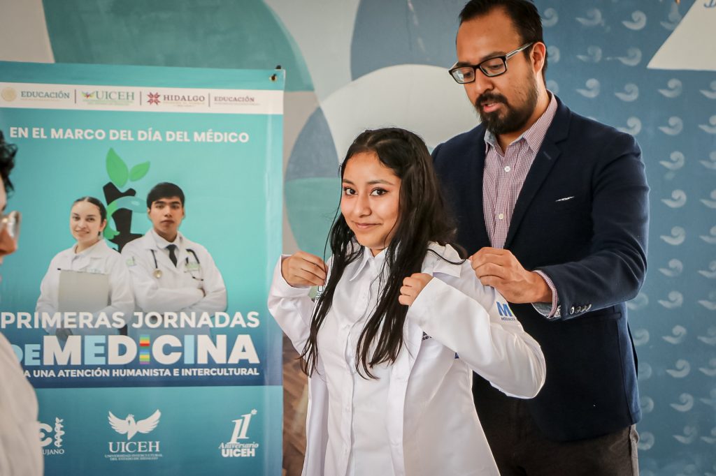Durante las actividades por el Día del Médico, la Universidad Intercultural del Estado de Hidalgo (UICEH) celebró la ceremonia de entrega de “batas blancas” a 28 estudiantes de la licenciatura de Médico Cirujano, evento que marca la incursión de los futuros profesionistas a desarrollar sus prácticas clínicas en instituciones de salud de la región Otomí-Tepehua.