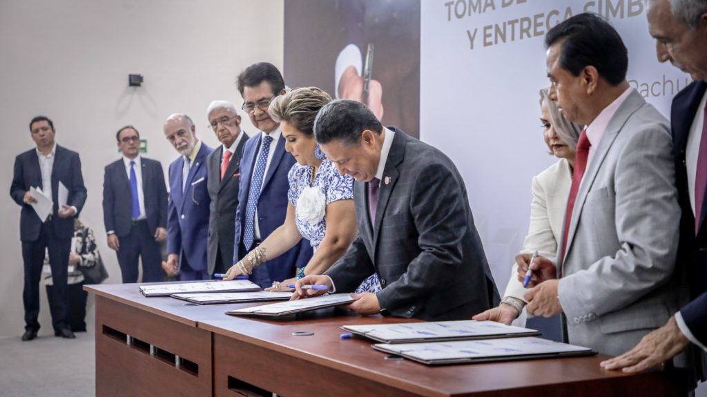 El gobernador Julio Menchaca Salazar, en su calidad de titular del Ejecutivo estatal, tomó protesta a las y los integrantes del Consejo Directivo Interino 2022-2024 del Colegio de Notarios, y entregó simbólicamente documentos de identificación.
