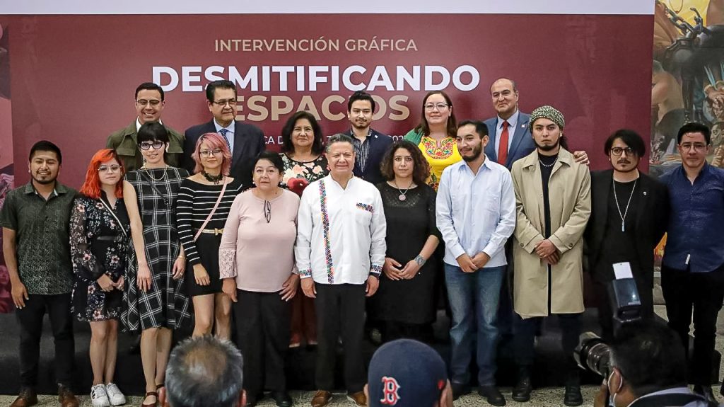 El titular del Ejecutivo estatal, Julio Menchaca Salazar, realizó el corte inaugural de la intervención gráfica Desmitificando Espacios en la sede del Gobierno de Hidalgo, siendo la primera galería artística que ocupa este espacio. La exposición está abierta al público en general y tiene el objetivo de acercar las expresiones culturales a la gente.