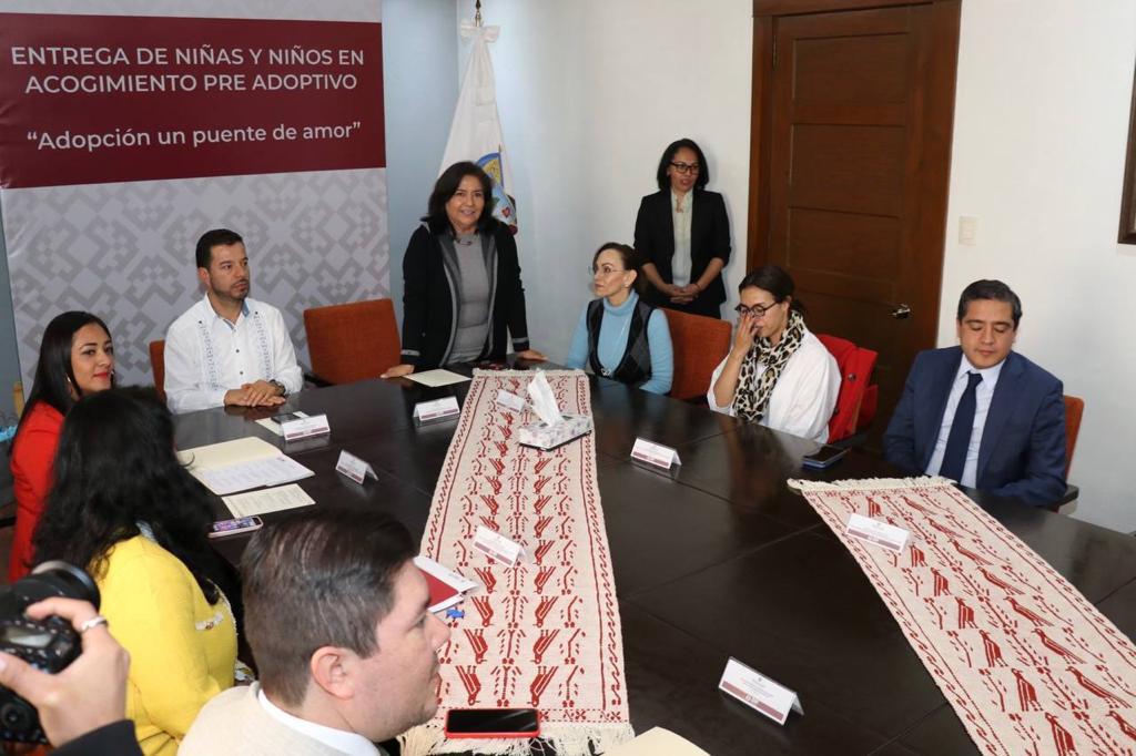 Bajo la consigna “la adopción es un puente de amor” Edda Vite, presidenta del Patronato del Sistema DIFH, en conjunto con las y los integrantes del Consejo Técnico de Adopciones llevaron a cabo la entrega formal de menores provenientes de Centros Asistenciales a sus nuevas familias.