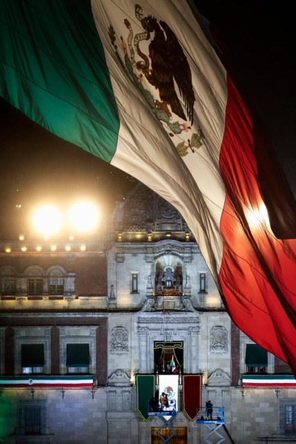 Ante miles de personas que se reunieron en el Zócalo para conmemorar las fiestas patrias, el mandatario ondeó en el balcón principal de Palacio Nacional la bandera tricolor que recibió de la escolta de cadetes del Heroico Colegio Militar, en su calidad de comandante supremo de las Fuerzas Armadas.