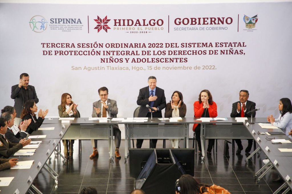 Guillermo Olivares Reyna, titular de la Secretaría de Gobierno, destacó que en esta sesión se integró de manera formal este organismo, luego de que, en septiembre pasado, inició un nuevo régimen político en la entidad. Asimismo, recordó que entre los objetivos del SIPINNA se encuentra la defensa de los derechos a la identidad, a una familia, la no discriminación, a una vida libre de violencia, salud, entre otros de niñas, niños y adolescentes en Hidalgo.