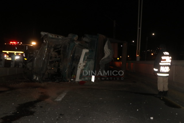 Información preliminar señala que el operador de dicho automotor debido al exceso de velocidad y falta de pericia perdió el control para posteriormente impactarse contra la barra de contención y volcarse.