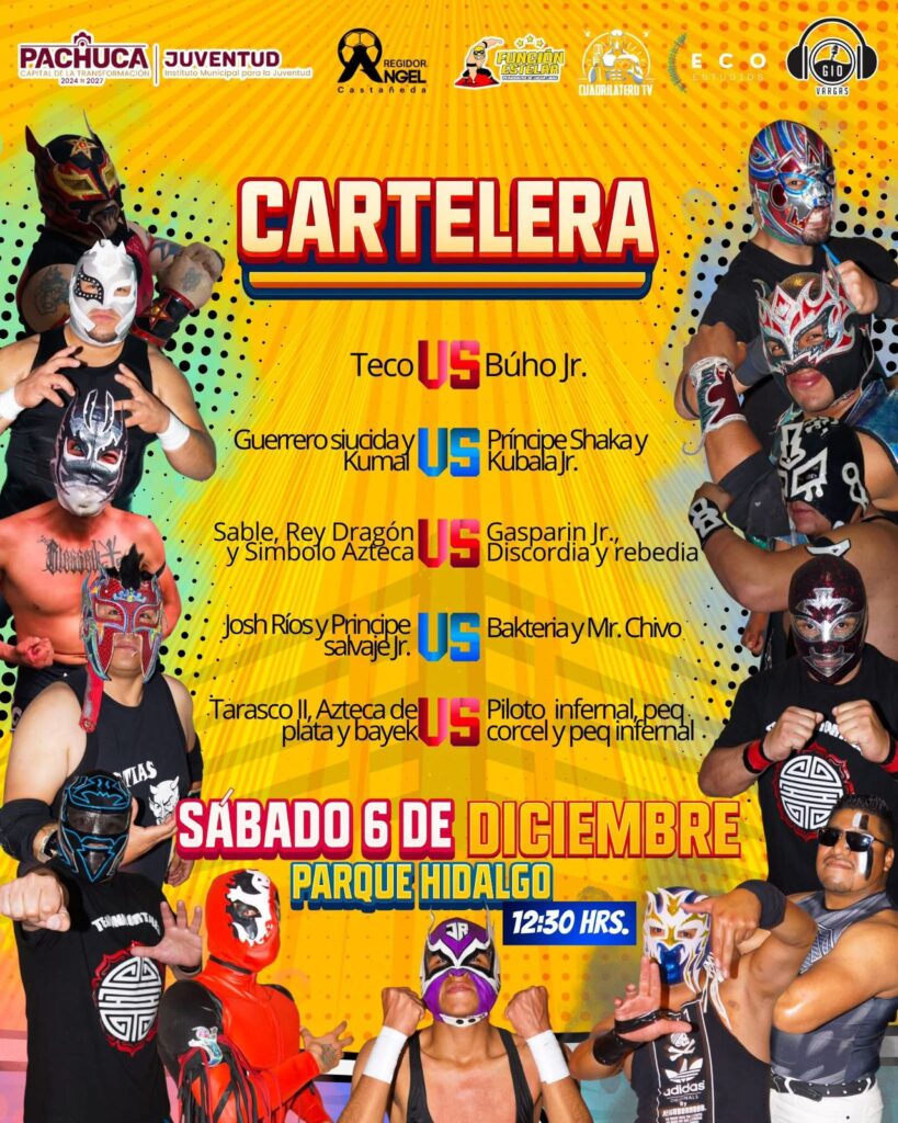 Instituto Municipal para la Juventud de Pachuca, en coordinación con el regidor Ángel Castañeda, realizarán este sábado 6 de diciembre el Festival de Lucha Libre en el Parque Hidalgo, a partir de las 10:00 horas. La actividad forma parte de las acciones impulsadas para promover alternativas de convivencia, cultura y desarrollo comunitario entre las juventudes de Pachuca, reconociendo la lucha libre como un elemento destacado de la identidad popular y como una disciplina que fomenta valores como la dedicación, el respeto y el trabajo en equipo.