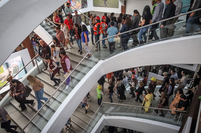 De esa forma, cientos de personas trabajadoras siguieron las instrucciones de 90 brigadistas y lograron abandonar el edificio de Gobierno, ubicado en la Plaza Juárez, en un tiempo de 3 minutos 23 segundos, desalojando a un total de mil 81 servidores públicos, 131 visitantes y 5 personas con discapacidad.