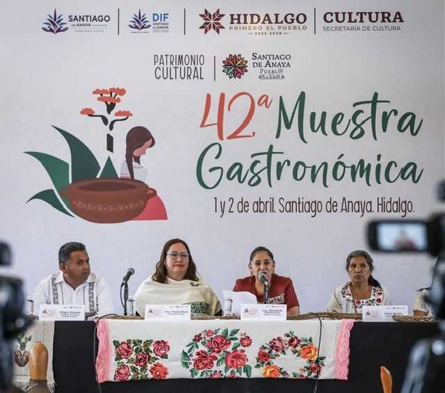 Hace días através de una conferencia de prensa, las secretarías del Gobierno de Hidalgo, Cultura y Turismo, dieron a conocer que la próxima 42.a Muestra Gastronómica en Santiago de Anaya será el 1 y 2 de abril, por lo que hacen una cordial invitación a toda la población a disfrutar de manjares del Valle del Mezquital.