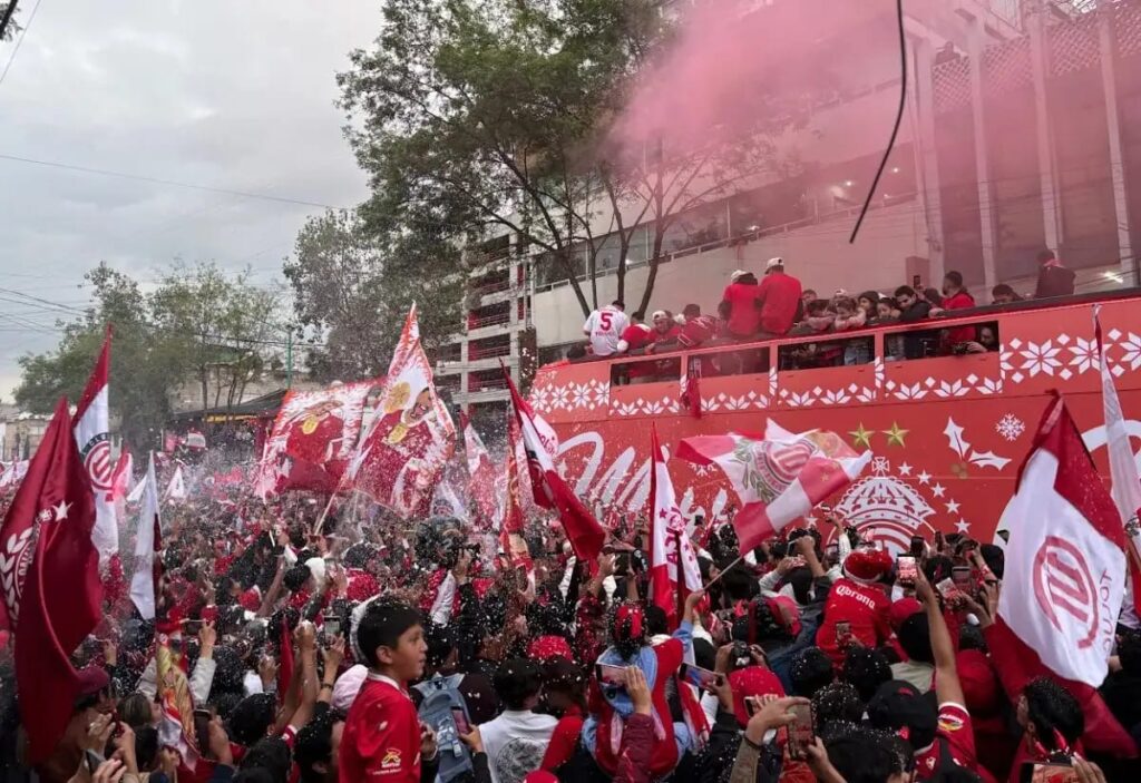 El autobús del campeón avanzó lentamente entre banderas escarlatas, cánticos, espuma y humo rojo sobre la calzada José María Morelos y Pavón, rumbo al estadio Nemesio Diez. La afición, entregada pese al clima frío, coreó durante horas canciones tradicionales del club, mientras los jugadores mostraban el trofeo a su paso.