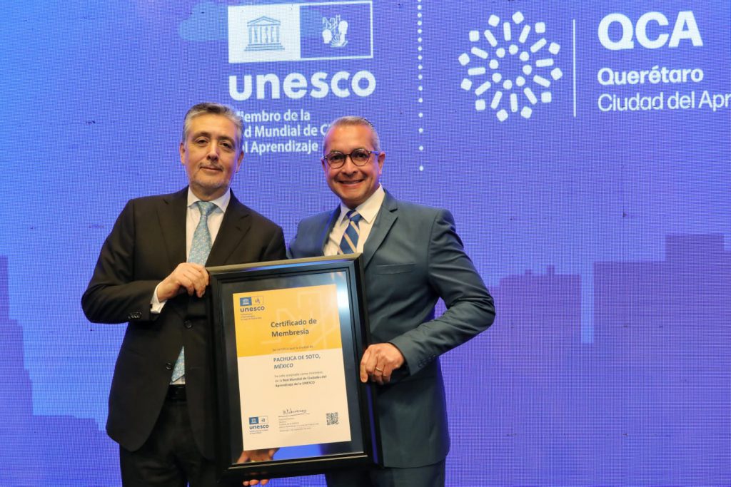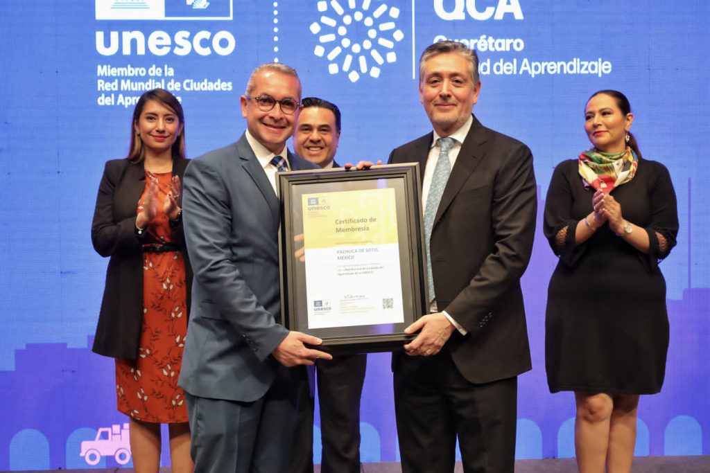 Este reconocimiento fue entregado en la ciudad Querétaro y con esto Pachuca se suma las 294 ciudades de 76 paises que conforman la Red Mundial de Ciudades del Aprendizaje.